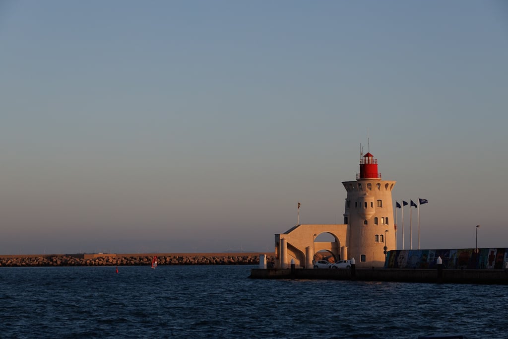 One benefit was that I got to see the sun setting over the marina, casting its orange glow over the lighthouse.