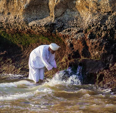 We followed them towards the rocks where there was a natural spring which the people were using as a part of their cleansing ritual - mystery solved.