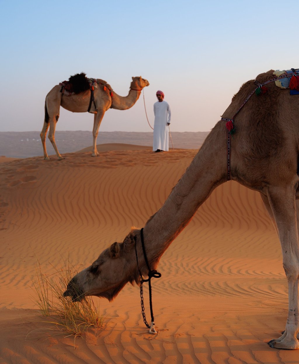 It was every bit as stunning as the sunset from the previous evening, except chillier until the sun had emerged above the horizon, but hot drinks were available! A very welcome fire had been lit and a pot of karak chai was brewing while camels sat waiting patiently (not for the brew though). This is a very popular drink in Oman, a rich mixture of Assam, cinnamon, cardamom, milk and not a little sugar.